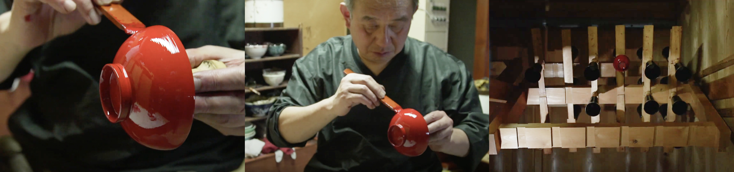 The lacquerware is then dried in a cedar storage room (Nushi-Buro) where the humidity and temperature are kept constant.