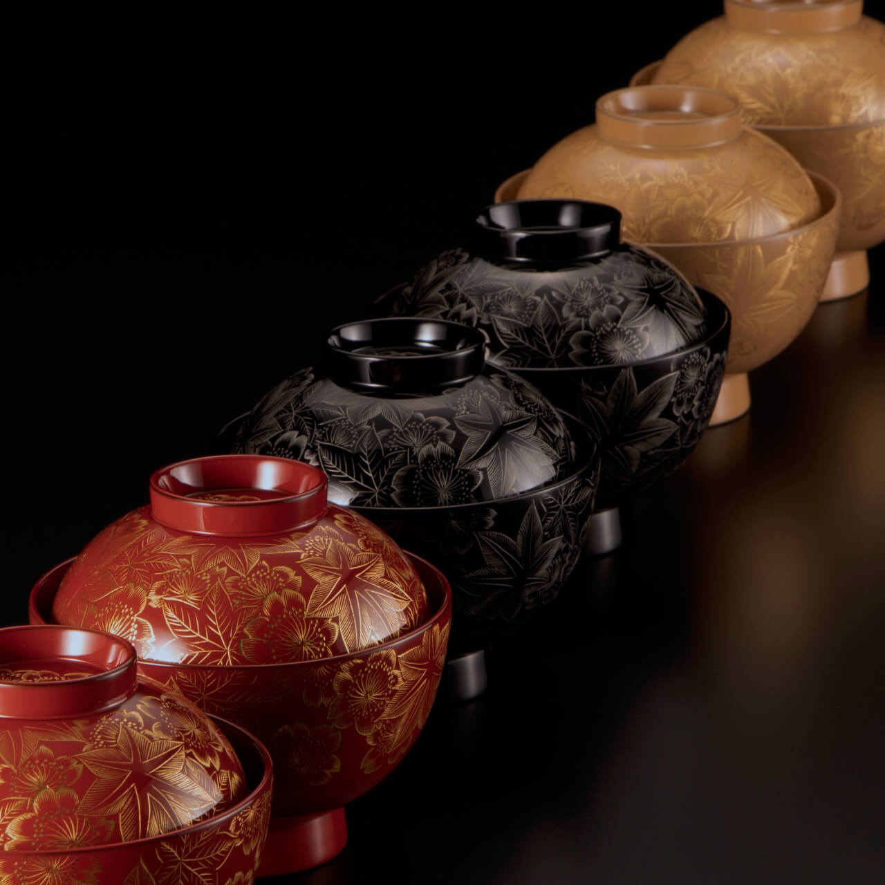 お椀をはじめとして、屠蘇器、重箱、酒器など、漆器は、古来よりハレの日を彩ってきた器でした。