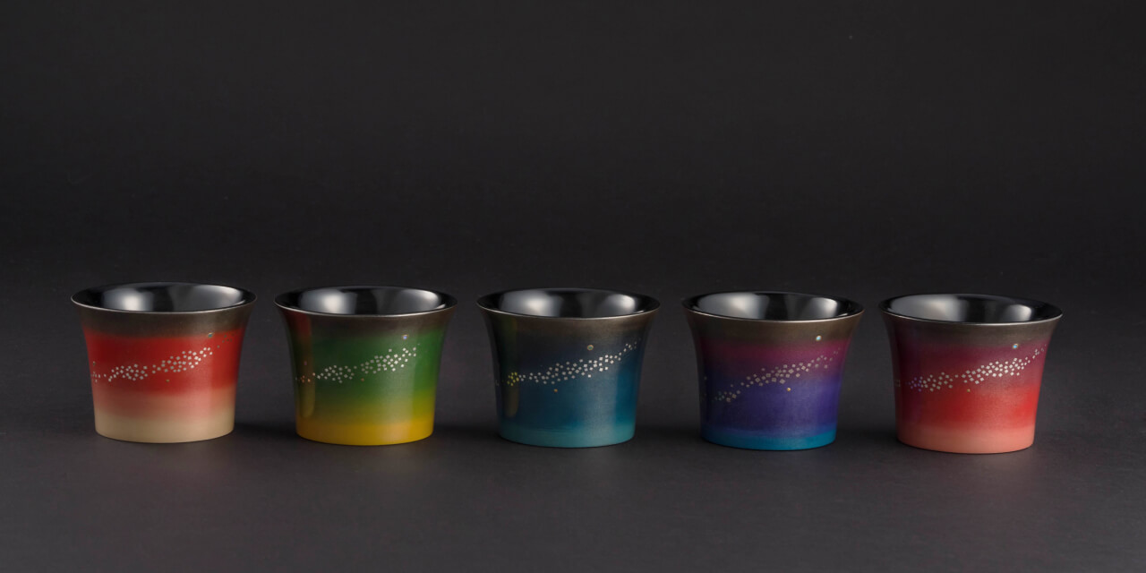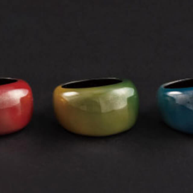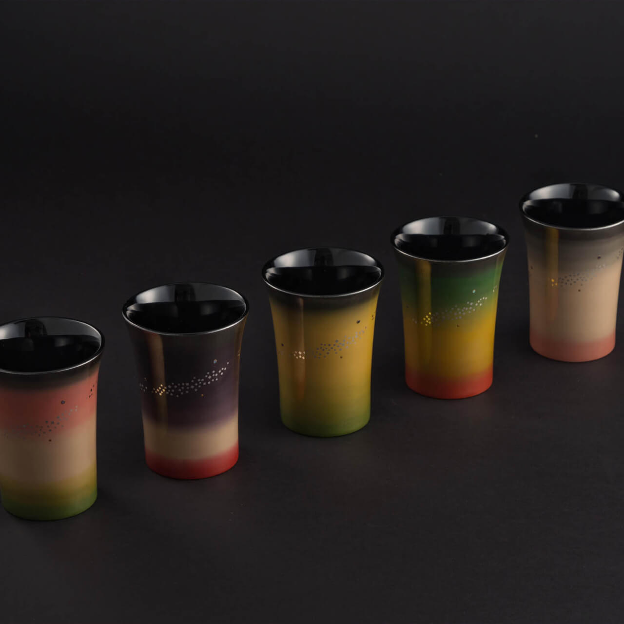 十二単衣の重ね色をヒントにし、日本海や空のいろ、爽やかな初夏の風、紅葉した山々、四季折々の風情豊かな輪島の『四季の彩-いろ』を、漆にうつしとりました。